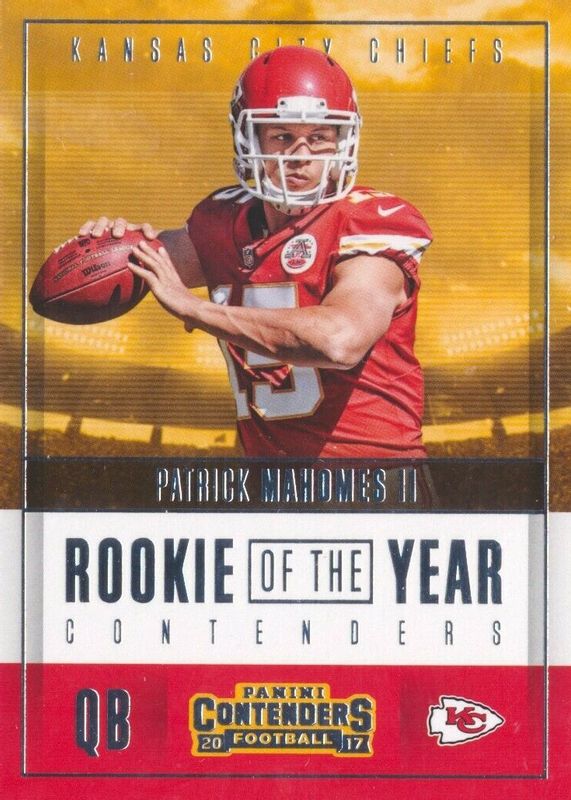 The top trending card in 2017 Contenders is currently Patrick Mahomes II 2017 Contenders #RY-3 Rookie of the Year Contenders.