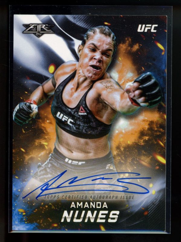 The top trending card in 2017 Topps Fire UFC is currently Amanda Nunes 2017 Topps Fire UFC #FA-AN Autographs - Inferno /1.