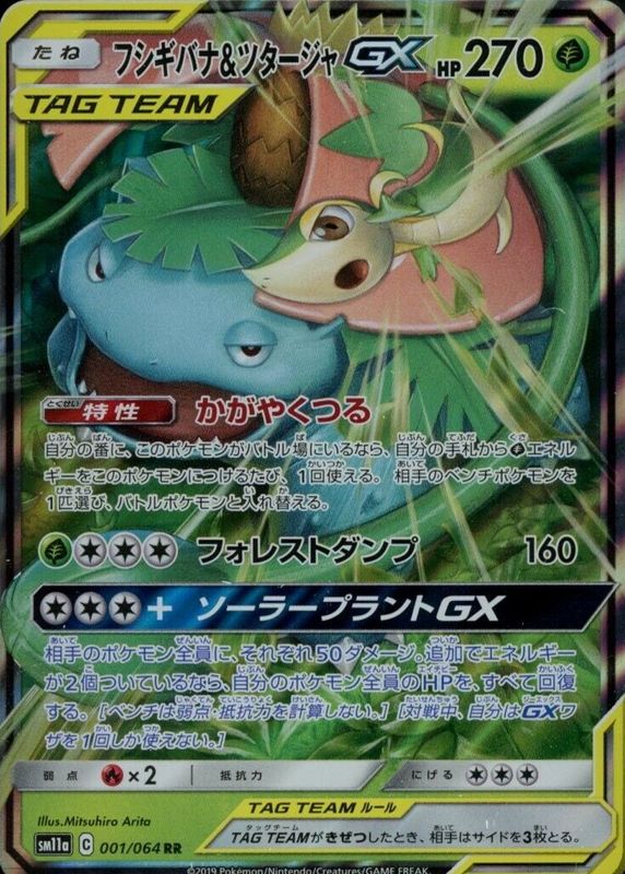 The top trending card in 2019 Japanese Sun & Moon: Remix Bout is currently Venusaur & Snivy GX 2019 Japanese Sun & Moon: Remix Bout #001/064 Double Rare.