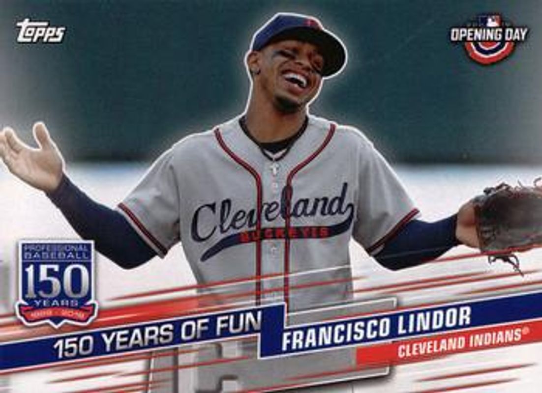 The top trending card in 2019 Topps Opening Day is currently Francisco Lindor 2019 Topps Opening Day #YOF-23 150 Years of Fun.