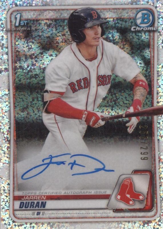The top trending card in 2020 Bowman is currently Jarren Duran 2020 Bowman #CPA-JD Chrome Prospect Auto - Speckle Refractor /299 (1st).