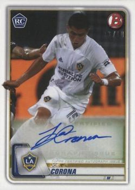 The top trending card in 2020 Bowman MLS is currently Joe Corona 2020 Bowman MLS #AU-JC Autographs /10.