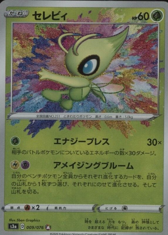 The top trending card in 2020 Japanese Sword & Shield: Legendary Heartbeat is currently Celebi 2020 Japanese Sword & Shield: Legendary Heartbeat #009/076 Amazing Rare.