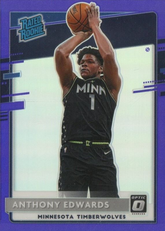 The top trending card in 2020 Optic is currently Anthony Edwards 2020 Optic #151 Purple.