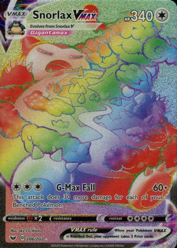 The top trending card in 2020 Sword & Shield is currently Snorlax VMAX 2020 Sword & Shield #206/202 Holo (Secret).