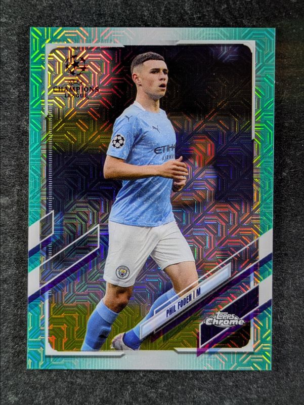 The top trending card in 2020 Topps UEFA Champions League Japan Edition is currently Phil Foden 2020 Topps UEFA Champions League Japan Edition #34 Aqua /199.