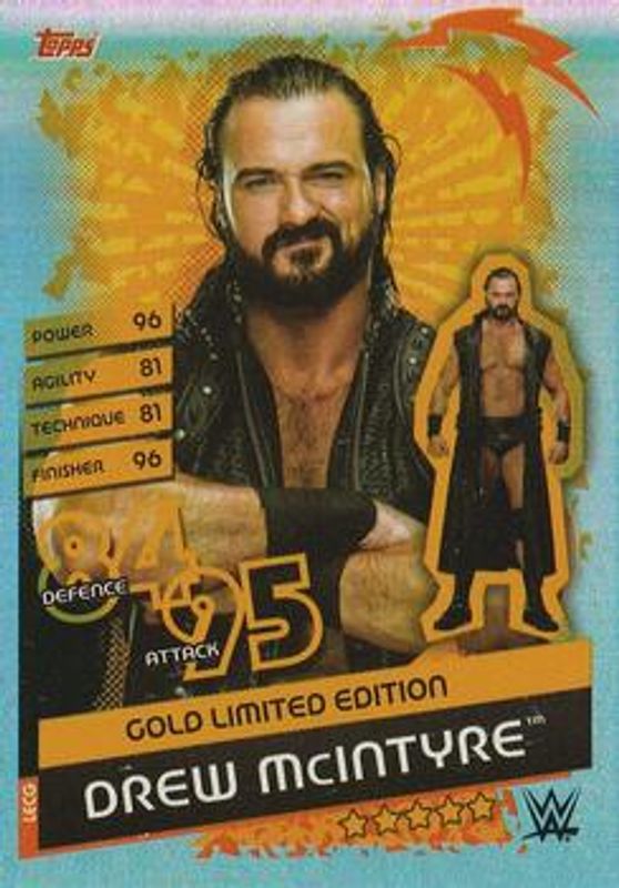 The top trending card in 2020 Topps WWE Slam Attax Reloaded is currently Drew McIntyre 2020 Topps WWE Slam Attax Reloaded #LECG Gold Limited Edition.