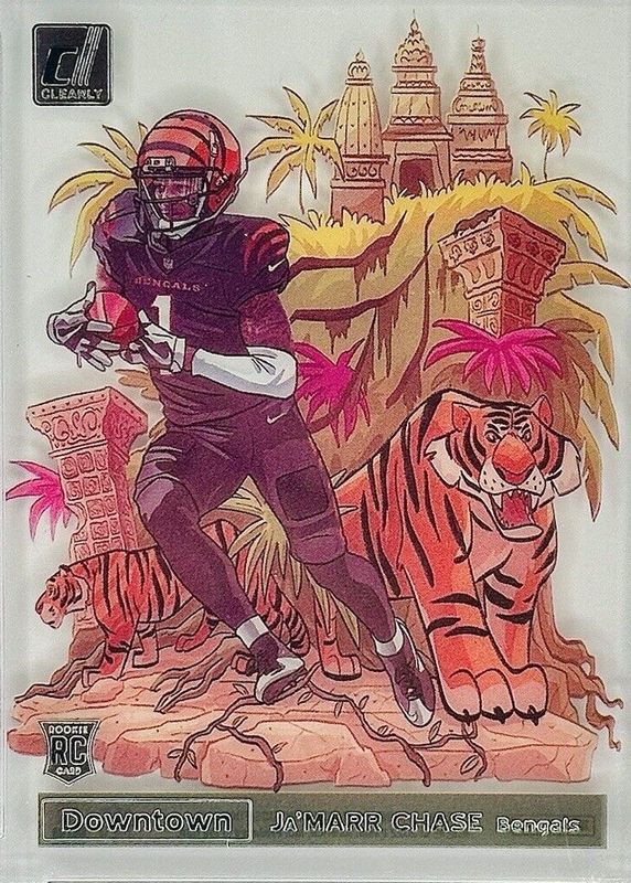 The top trending card in 2021 Clearly Donruss is currently Ja'Marr Chase 2021 Clearly Donruss #D-31 Downtown /(SSP).