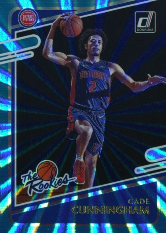 The top trending card in 2021 Donruss is currently Cade Cunningham 2021 Donruss #1 The Rookies - Teal Laser.