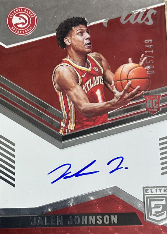 The top trending card in 2021 Elite is currently Jalen Johnson 2021 Elite #PP-JJO Pen Pals /149.