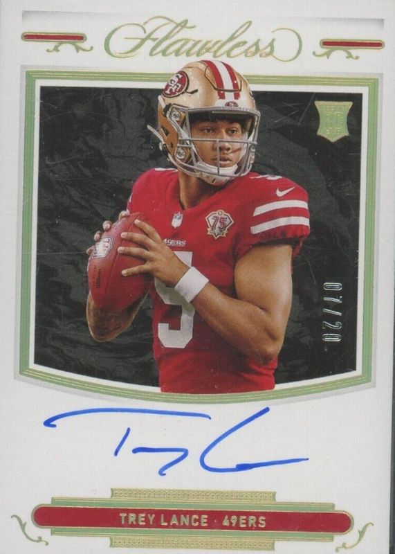 The top trending card in 2021 Flawless is currently Trey Lance 2021 Flawless #RSS-TRL Rookie Shadow Signatures (/20).