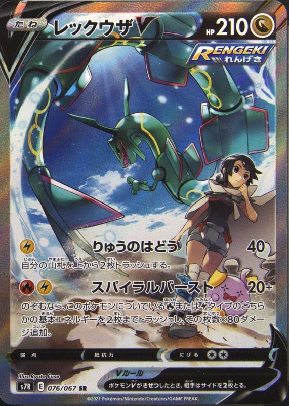 The top trending card in 2021 Japanese Sword & Shield: Blue Sky Stream is currently Rayquaza V 2021 Japanese Sword & Shield: Blue Sky Stream #076/067 Super Rare.