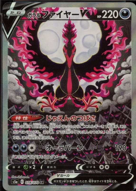 We track 74 players in 2021 Japanese Sword & Shield: Peerless Fighters cards set including Galarian Zapdos V, Klara, Galarian Moltres V, Brawly, Avery, Galarian Articuno V, Galarian Slowking V, Blaziken VMAX, Galarian Slowking VMAX, and Dracozolt VMAX.