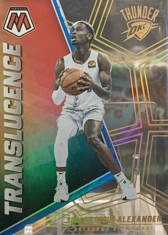 The top trending card in 2021 Mosaic is currently Shai Gilgeous-Alexander 2021 Mosaic #21 Translucence /(SSP).