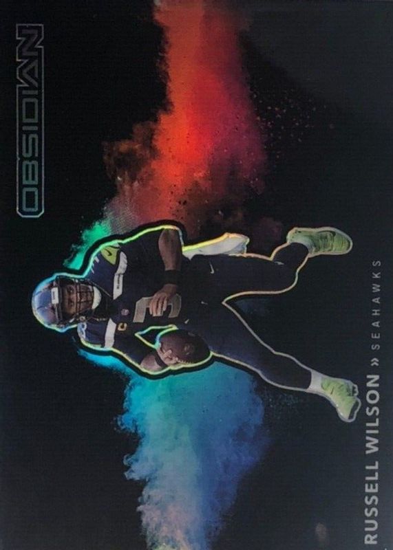 The top trending card in 2021 Obsidian is currently Russell Wilson 2021 Obsidian #CB-4 Black Color Blast /(SSP).