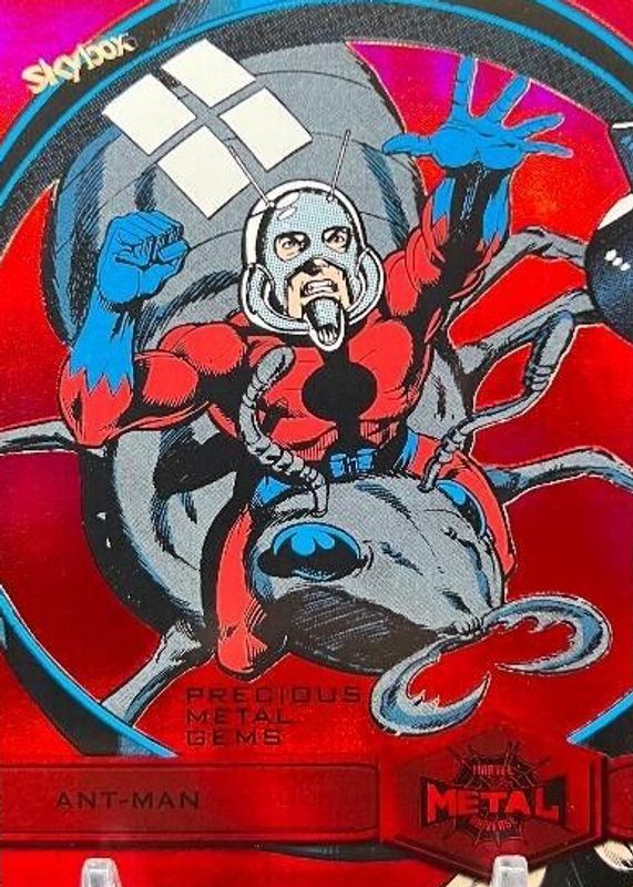 The top trending card in 2021 Skybox Marvel Metal Universe Spider-Man is currently Ant-Man 2021 Skybox Marvel Metal Universe Spider-Man #104 Precious Metal Gems Red (High Series) /90.