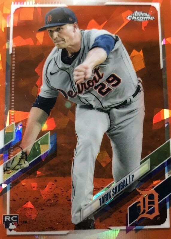 The top trending card in 2021 Topps Chrome Sapphire Edition is currently Tarik Skubal 2021 Topps Chrome Sapphire Edition #92 Orange /25.