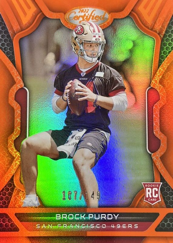 The top trending card in 2022 Certified is currently Brock Purdy 2022 Certified #181 Mirror Orange /149.