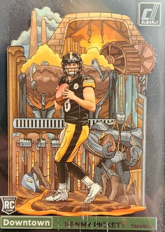 The top trending card in 2022 Clearly Donruss is currently Kenny Pickett 2022 Clearly Donruss #DT-KP Downtown /(SSP).