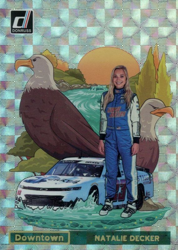 The top trending card in 2022 Donruss NASCAR is currently Natalie Decker 2022 Donruss NASCAR #ND Downtown /(SSP).
