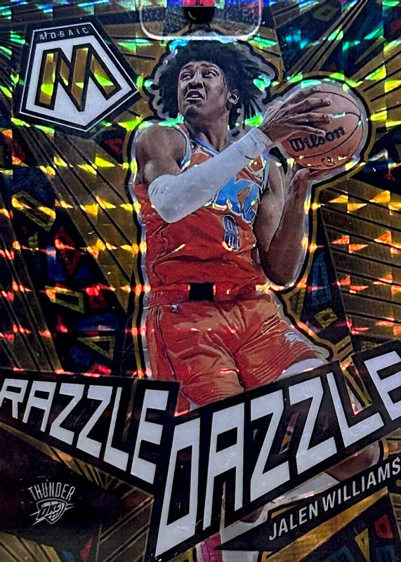 The top trending card in 2022 Mosaic is currently Jalen Williams 2022 Mosaic #9 Razzle Dazzle /(SSP).