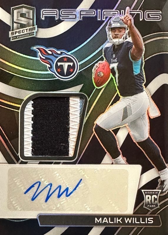 The top trending card in 2022 Spectra is currently Malik Willis 2022 Spectra #APA-MWI Aspiring Patch Autographs /99.