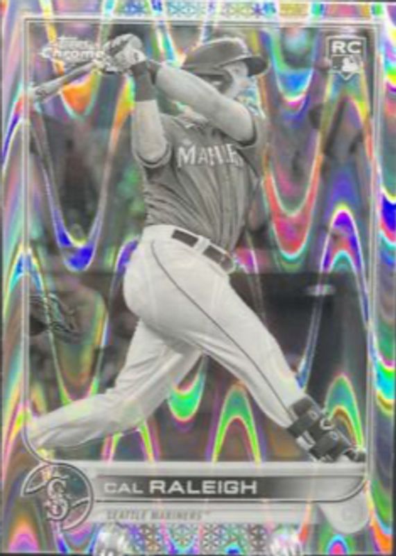 The top trending card in 2022 Topps Chrome Sonic is currently Cal Raleigh 2022 Topps Chrome Sonic #149 Black & White RayWave Refractor.