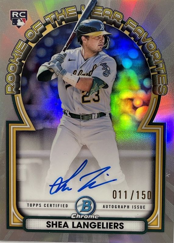 The top trending card in 2023 Bowman is currently Shea Langeliers 2023 Bowman #ROY-SL Rookie of the Year Favorites Autographs /150.