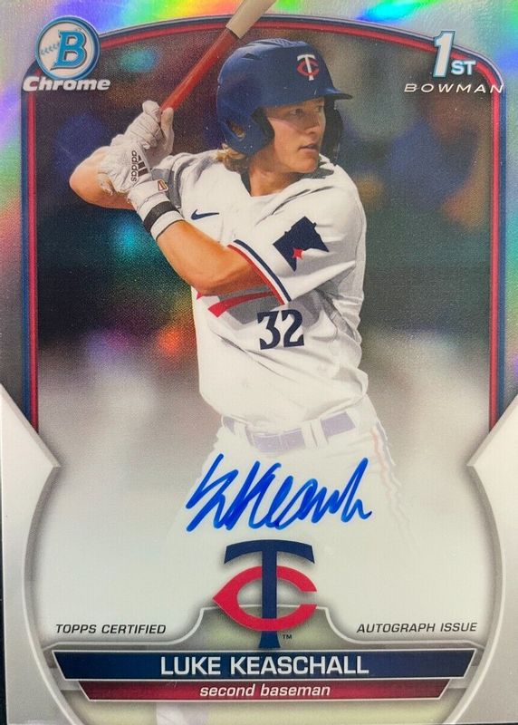 The top trending card in 2023 Bowman Draft is currently Luke Keaschall 2023 Bowman Draft #CDA-LK Chrome Prospect Auto - Refractor /499 (1st).