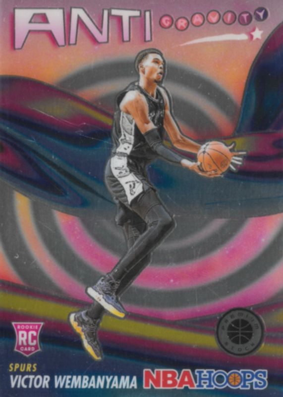 The top trending card in 2023 Hoops Premium Stock is currently Victor Wembanyama 2023 Hoops Premium Stock #5 Anti Gravity.