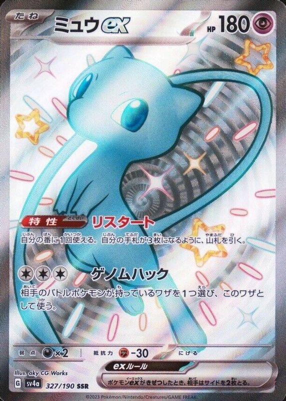 The top trending card in 2023 Japanese Scarlet & Violet: Shiny Treasure ex is currently Mew ex 2023 Japanese Scarlet & Violet: Shiny Treasure ex #327/190 Shiny Super-Rare.