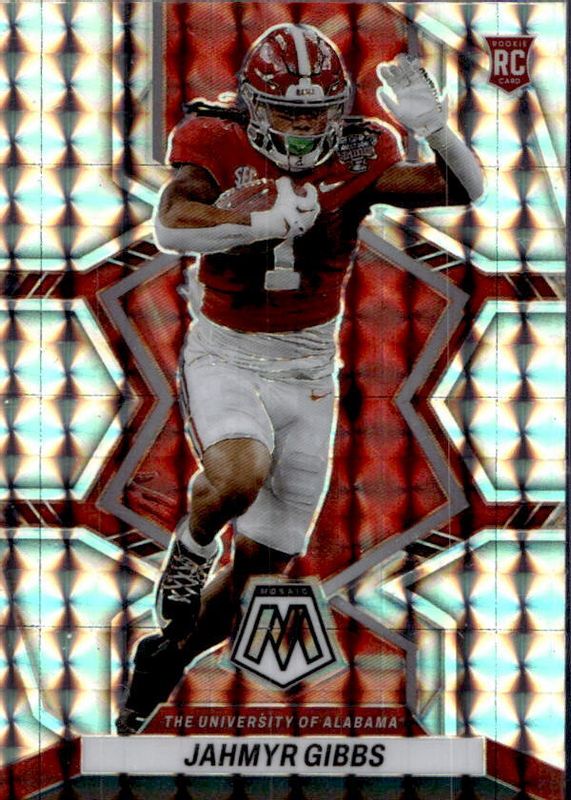 The top trending card in 2023 Mosaic Draft Picks is currently Jahmyr Gibbs 2023 Mosaic Draft Picks #8 Mosaic.