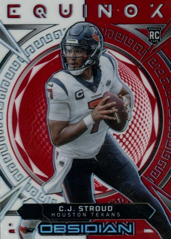 The top trending card in 2023 Obsidian is currently CJ Stroud 2023 Obsidian #10 Equinox - Electric Etch Red Flood.