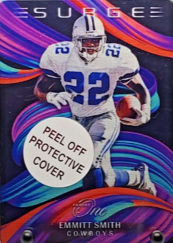 The top trending card in 2023 One is currently Emmitt Smith 2023 One #7 Surge /(SSP).