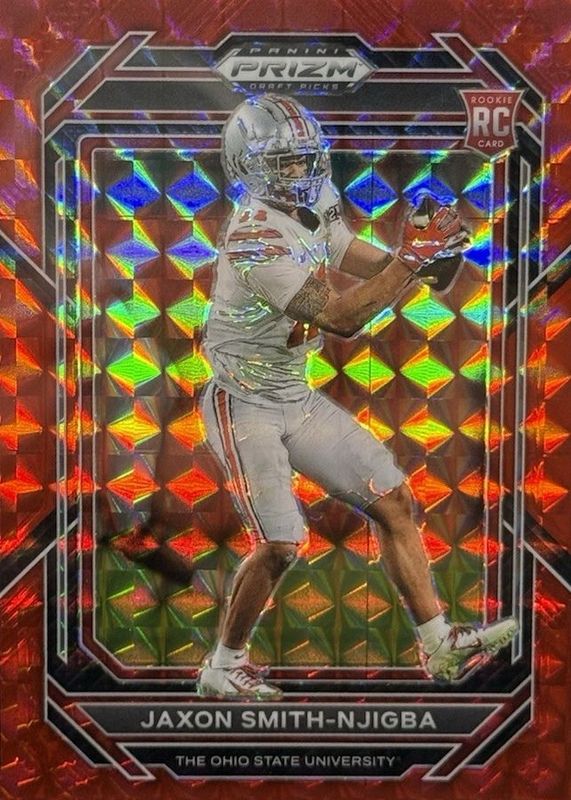 The top trending card in 2023 Prizm Draft Picks is currently Jaxon Smith-Njigba 2023 Prizm Draft Picks #135 Red Finite /125.