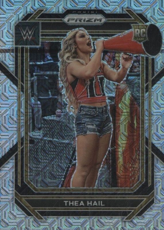 The top trending card in 2023 Prizm WWE is currently Thea Hail 2023 Prizm WWE #122 Mojo /25.