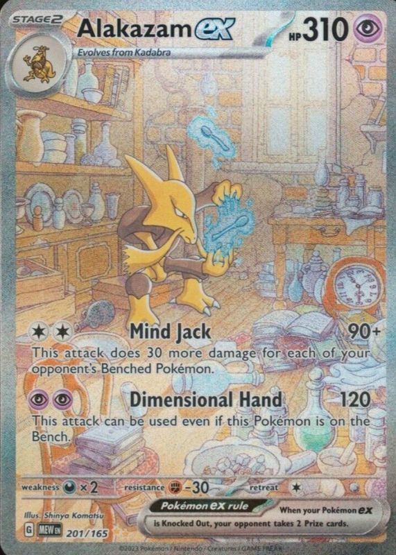 The top trending card in 2023 Scarlet & Violet: 151 is currently Alakazam ex 2023 Scarlet & Violet: 151 #201/165 Special Illustration Rare.