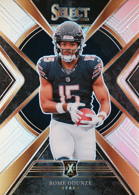 The top trending card in 2023 Select is currently Rome Odunze 2023 Select #512 XRC Prizm.