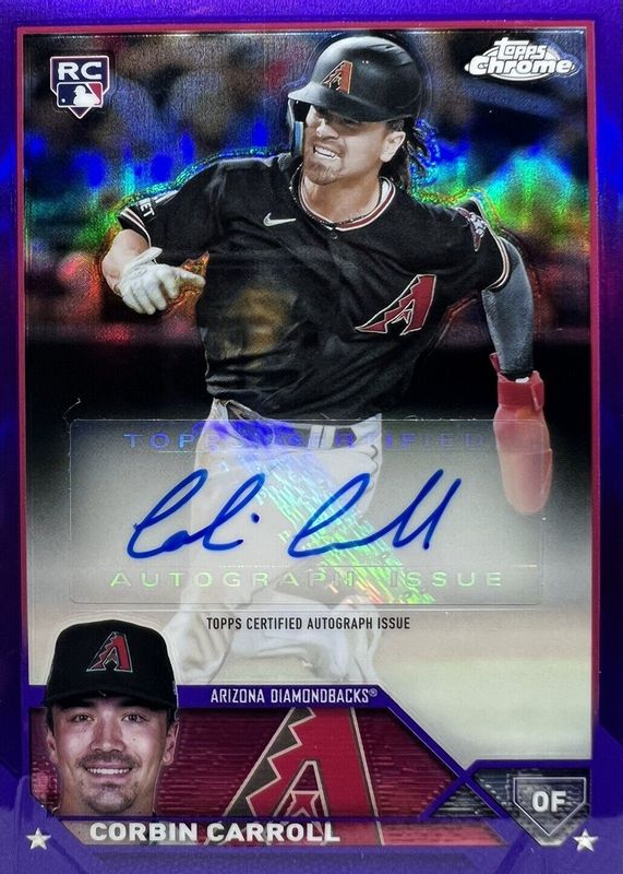 The top trending card in 2023 Topps Chrome Update is currently Corbin Carroll 2023 Topps Chrome Update #AC-CCA Autographs - Purple Refractor /250.