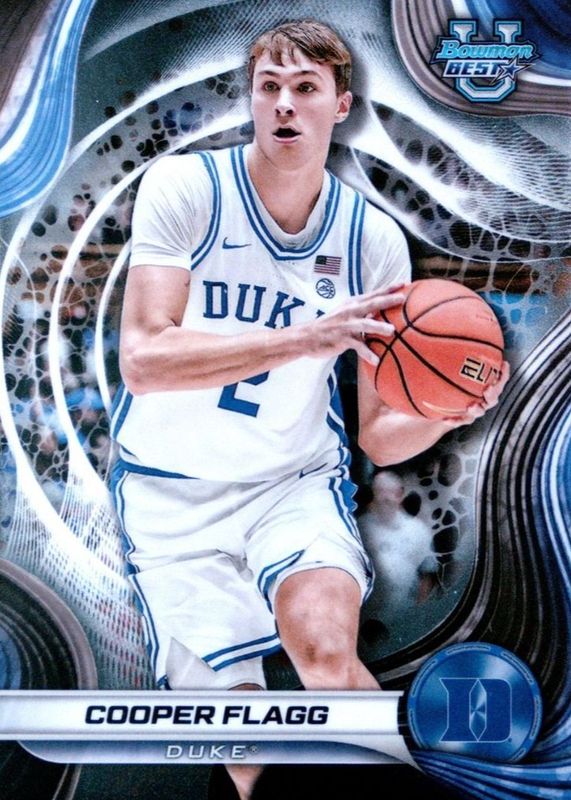 The top trending card in 2024 Bowman Best University is currently Cooper Flagg 2024 Bowman Best University #16 Base.