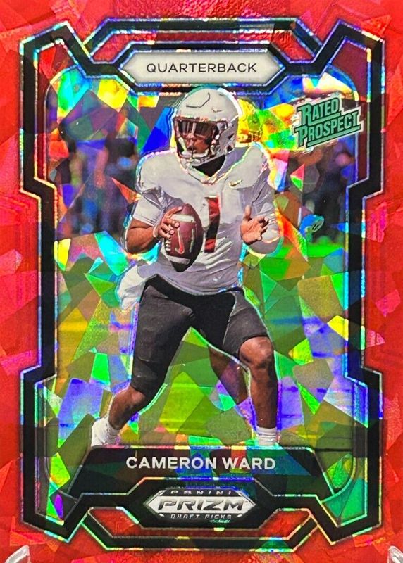 The top trending card in 2024 Prizm Draft Picks is currently Cam Ward 2024 Prizm Draft Picks #199 Red Ice.