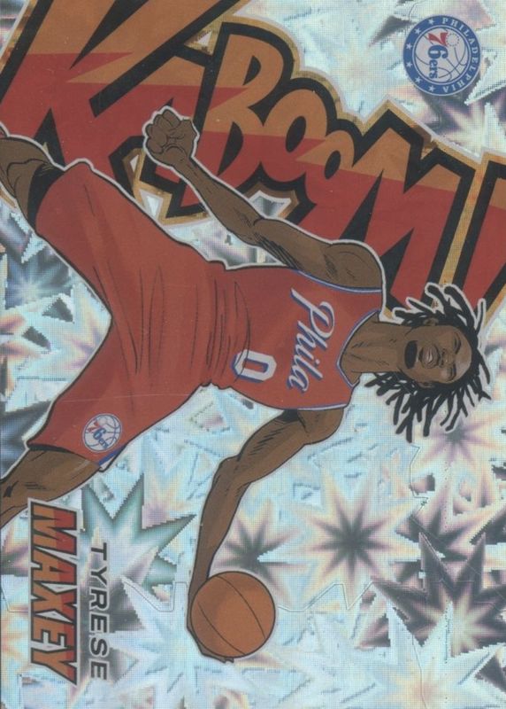 The top trending card in 2024 Revolution is currently Tyrese Maxey 2024 Revolution #4 Kaboom! (Horizontal).