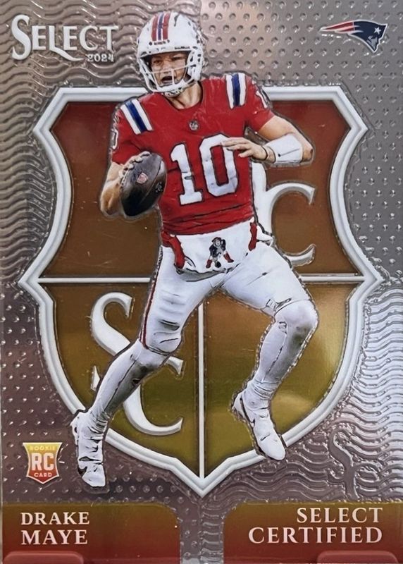 The top trending card in 2024 Select is currently Drake Maye 2024 Select #3 Select Certified Rookies.