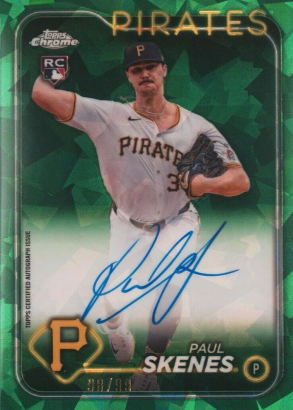 The top trending card in 2024 Topps Chrome Update Sapphire Edition is currently Paul Skenes 2024 Topps Chrome Update Sapphire Edition #USA-PS Autographs - Green /99.