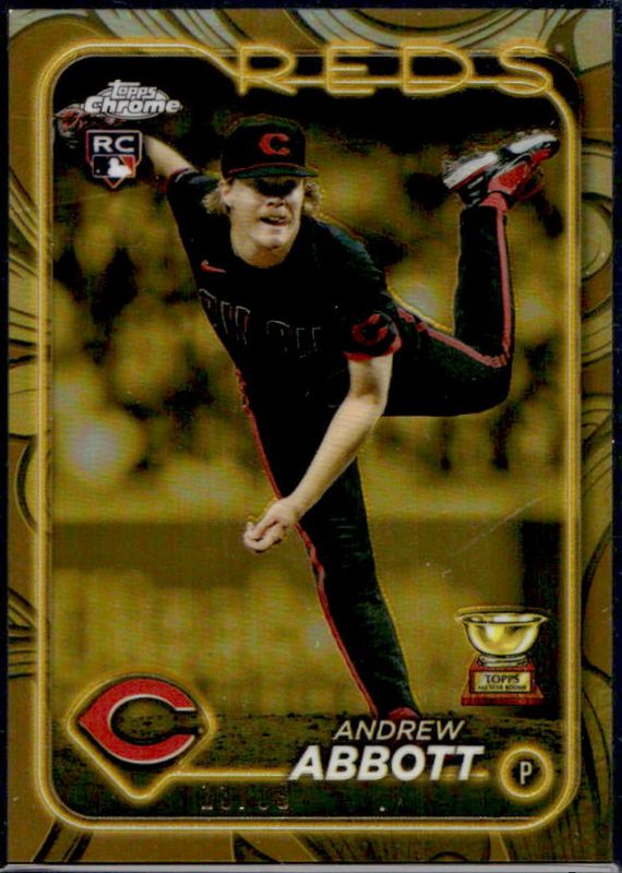 The top trending card in 2024 Topps Gilded Collection is currently Andrew Abbott 2024 Topps Gilded Collection #43 Base /99.