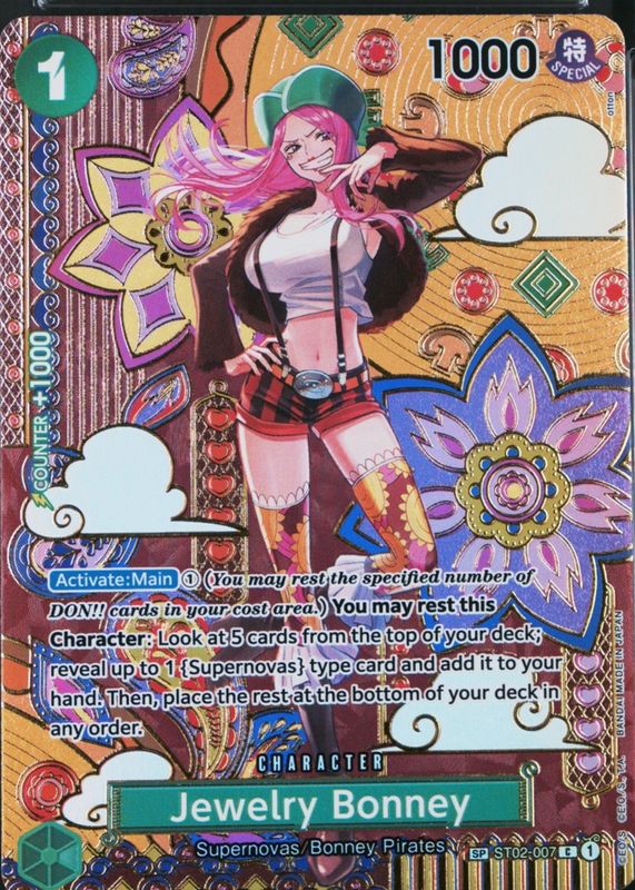 The top trending card in 2024 Two Legends is currently Jewelry Bonney 2024 Two Legends #ST02-007 Foil (SP).