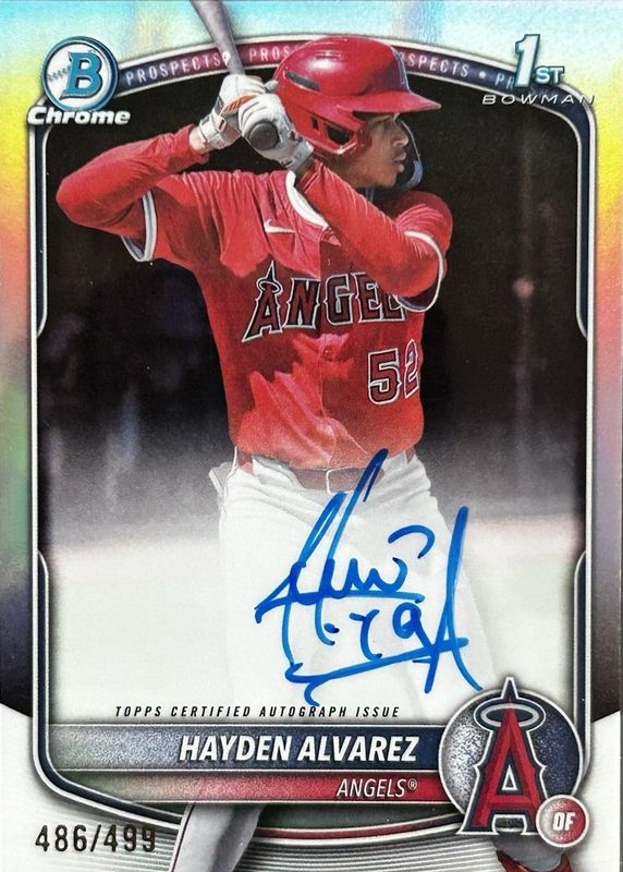 The top trending card in 2025 Bowman is currently Hayden Alvarez 2025 Bowman #CPA-HA Chrome Prospect Auto - Refractor /499 (1st).