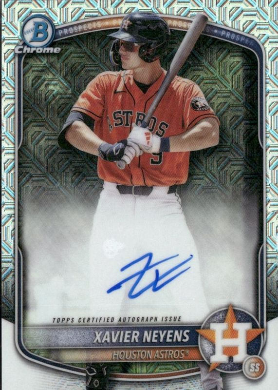 The top trending card in 2025 Bowman Draft Mega Box is currently Xavier Neyens 2025 Bowman Draft Mega Box #BMA-XN Prospect Auto.