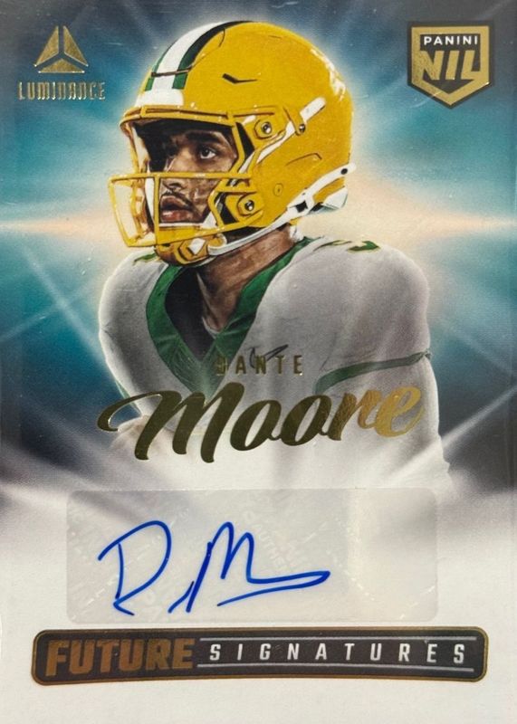 The top trending card in 2025 Luminance is currently Dante Moore 2025 Luminance #NIL-DME Future Signatures NIL.