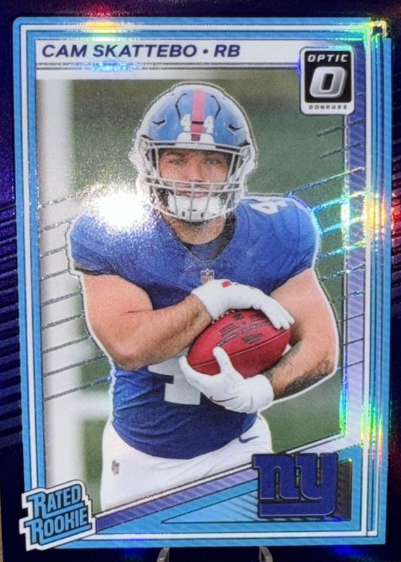 The top trending card in 2025 Optic is currently Cam Skattebo 2025 Optic #228 Purple /60.